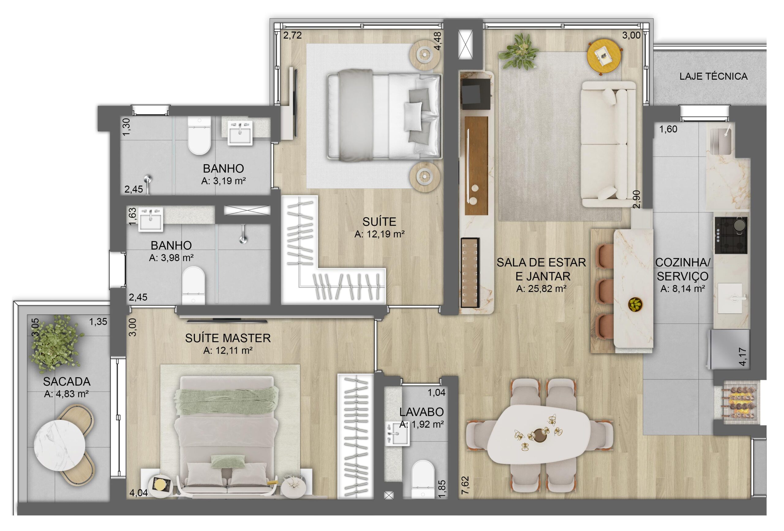 Conheça as plantas exclusivas do Residenziale La Thuile, projetadas para oferecer o máximo em conforto, sofisticação e funcionalidade. Com espaços bem distribuídos, acabamentos de alto padrão e áreas de convivência pensadas para o seu bem-estar, cada detalhe foi planejado para proporcionar uma experiência única de moradia.
